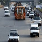 Onlookers showered flowers on his coffin during the procession, and dozens holding the Indian flag ran alongside the carriage.