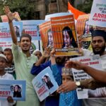 In Ahmedabad, the main city in Modi’s home state of Gujarat, protesters including children marched holding posters of the two BJP officials and calling for police to arrest Sharma.